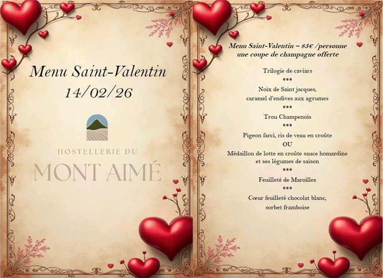Pour la Saint-Valentin, savourez un menu raffiné et généreux, conçu à partir de produits d’exception.