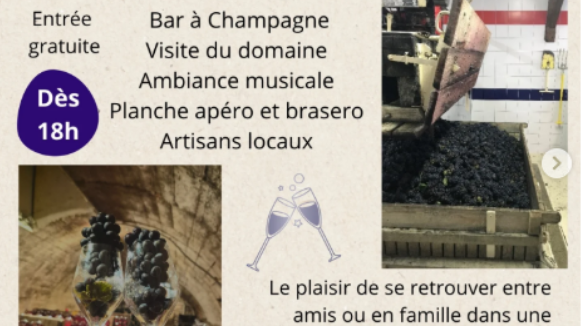 Nous vous donnons rendez vous le 25 avril à partir de 18h autour de notre pressoir.