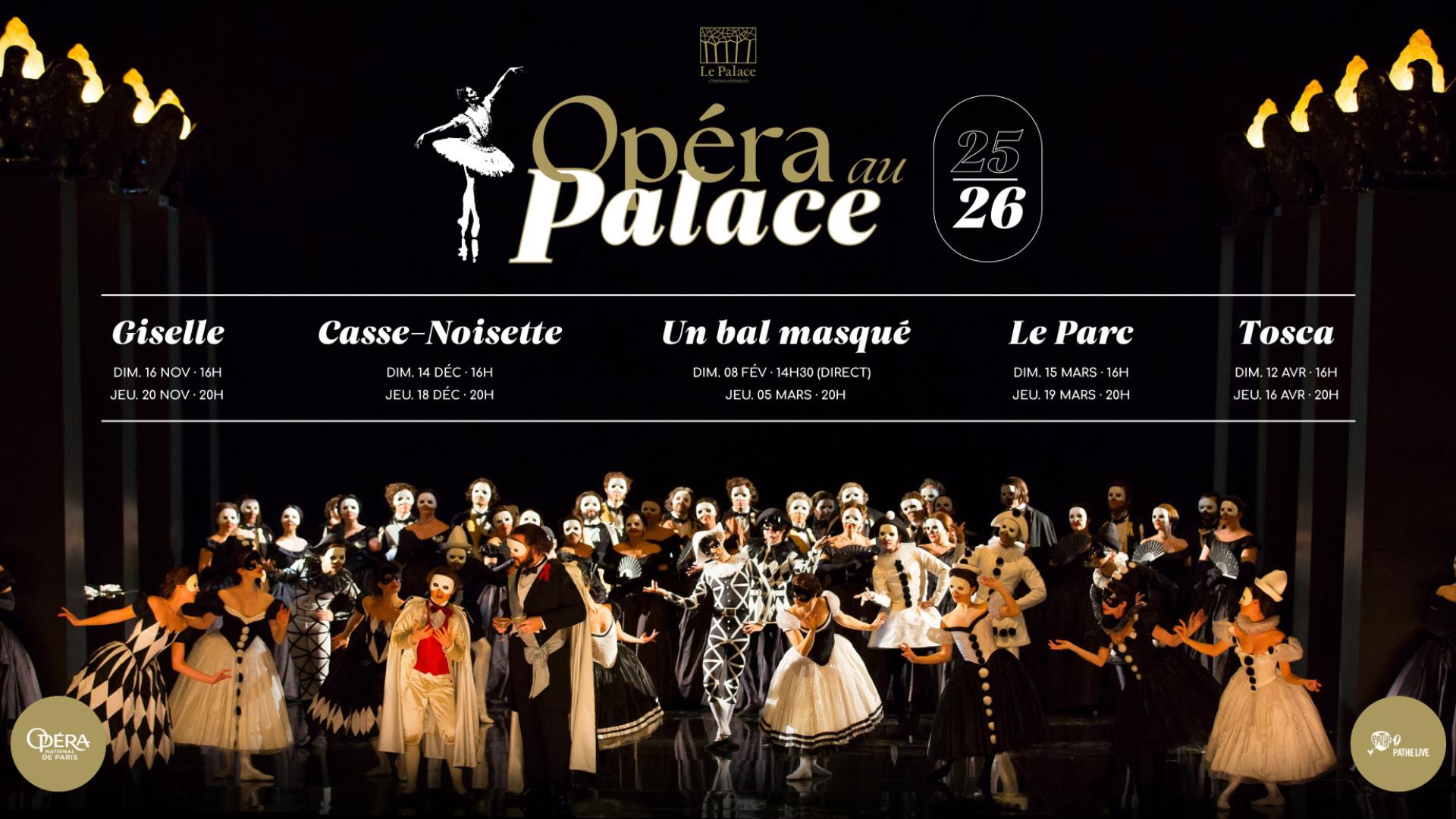 A l’affiche de la programmation 2025-2026 : Giselle, Casse-Noisette, Un bal masqué et Le Parc Plus d'infos sur le site du cinéma Le Palace