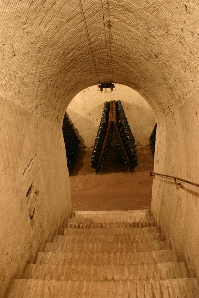 Ses caves qui ont été creusées à la main en 1870, sont à 19 mètres sous terre où les Champagnes mûrissent de nombreuses années à une température constante de 12°C..