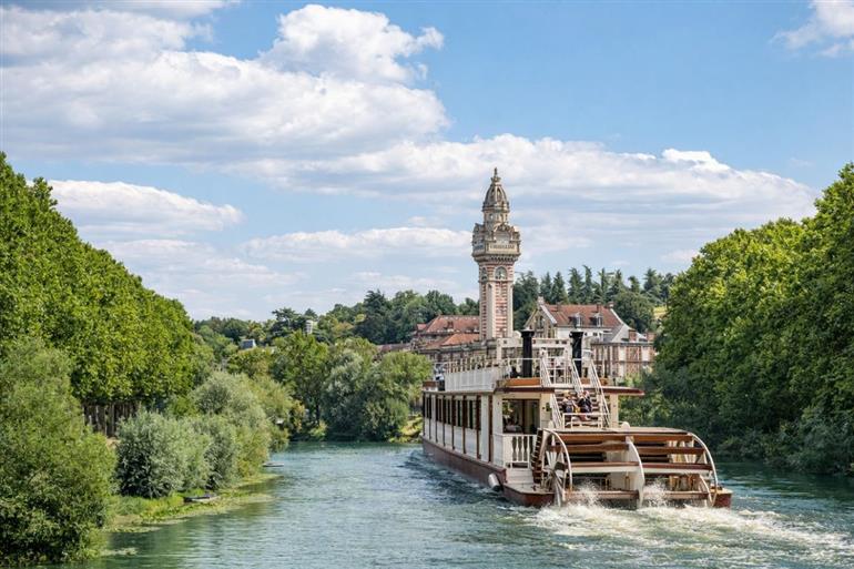 Let yourself be lulled by the Marne River aboard this paddle steamer with panoramic views of the valley.