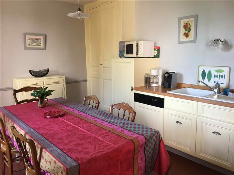 Former winery, the cottage has 3 bedrooms with a capacity of 5 adults and 2 babies. Two walled gardens offer spaces of play and amenity out of sight. Located at the end of the village, the cottage has direct access to the countryside.