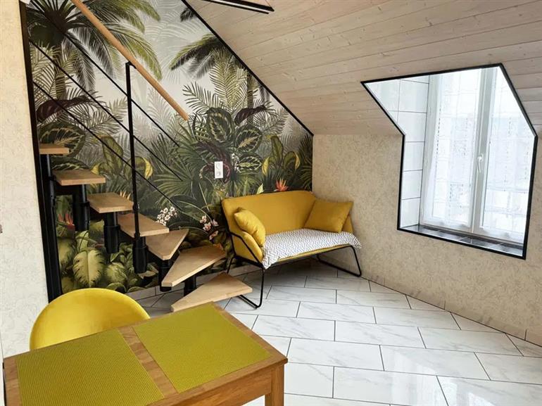 Appartement Les Tulipes sleeps 2 people. This duplex studio has one bedroom with a double bed, a sitting and dining area, a shower room and a fully equipped kitchen. It is air-conditioned for your comfort.