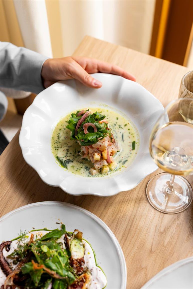 The restaurant showcases refined cuisine, inspired by the local terroir and elevated with seasonal produce.