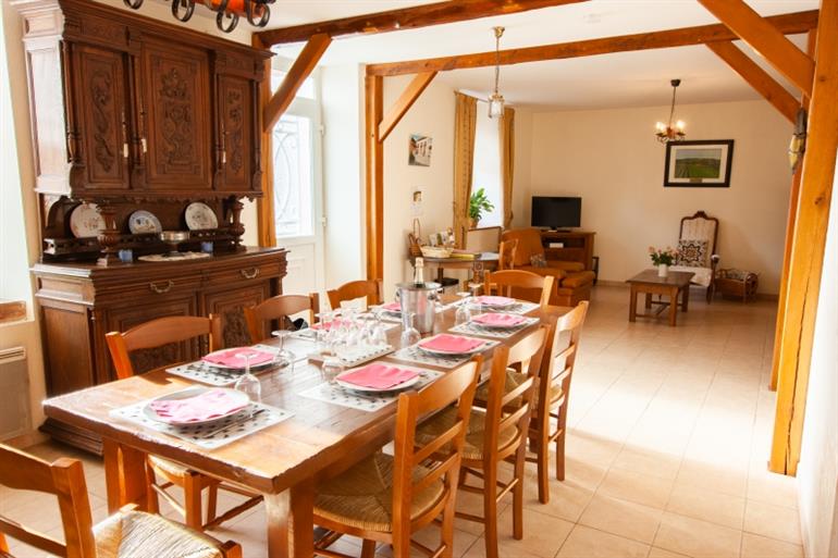 Dans un village très calme, Sandrine, agricultrice, vous accueille dans une maison début 19e`me, en pierre calcaire, totalement indépendante. Grand parking dans la cour.