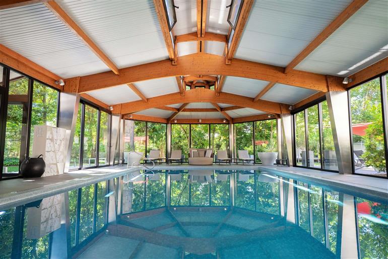 Les petits déjeuners peuvent être pris dans le parc ou au bord de la magnifique piscine intérieure.