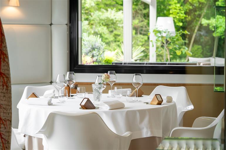 L'Assiette Champenoise est le lieu pour les amateurs de design : suites illuminées de toiles, piscine à éclat indigo serti de verrières... tout est décoré avec goût !