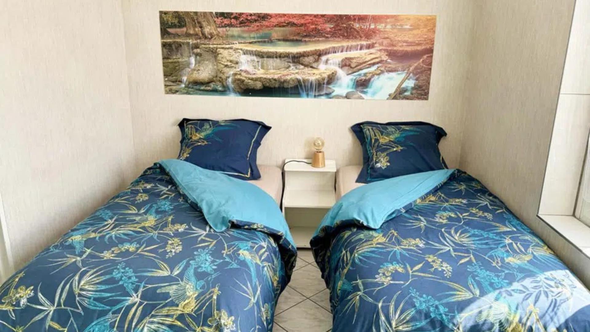 L'Appartement L'Orchidée peut accueillir 2 personnes. Il dispose d'une chambre avec des lits jumeaux, d'un salon, d'une salle de douche, et d'une cuisine équipée. Pour votre confort, il est climatisé.