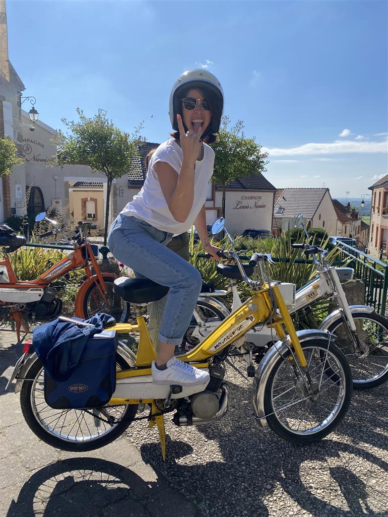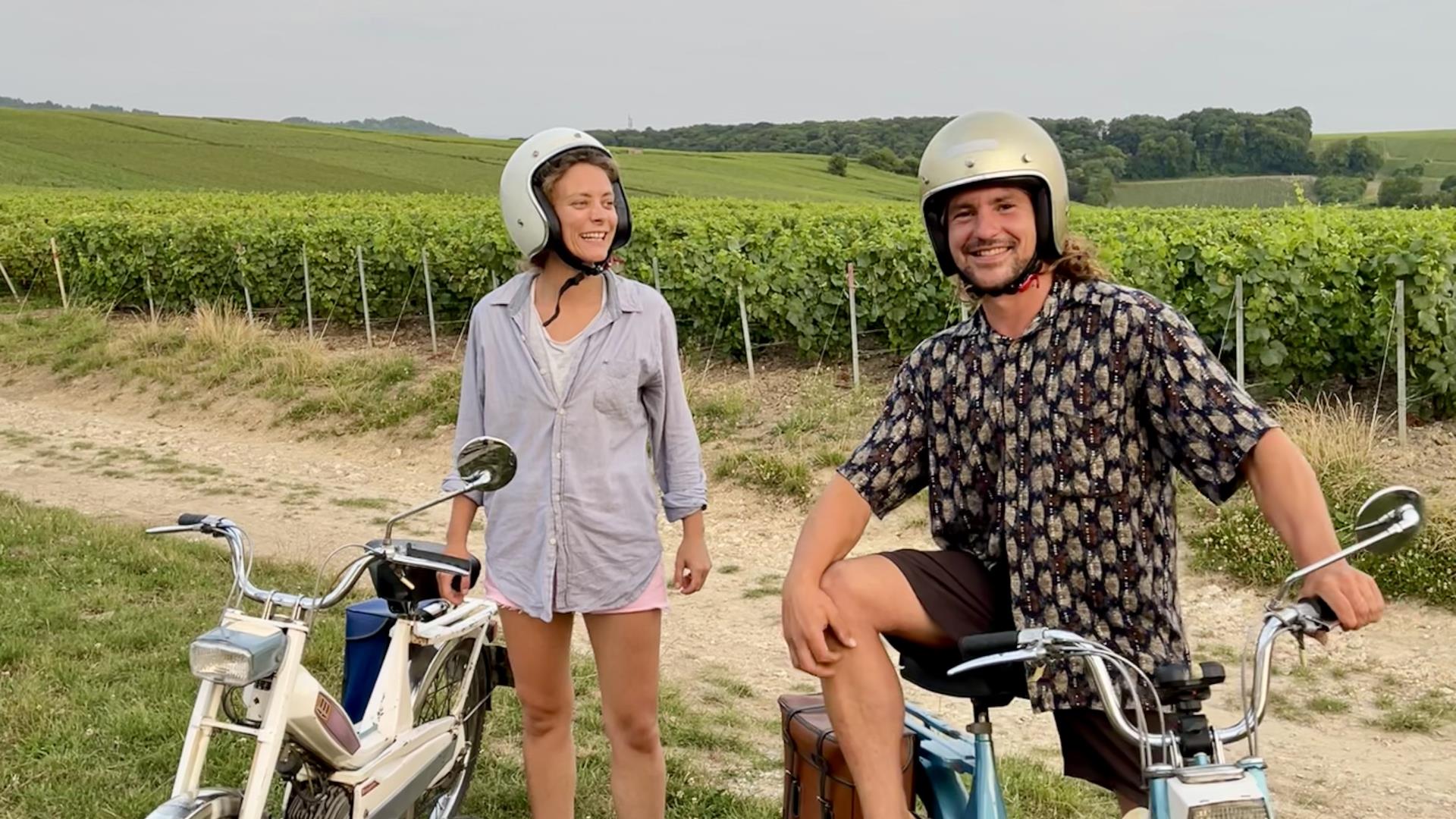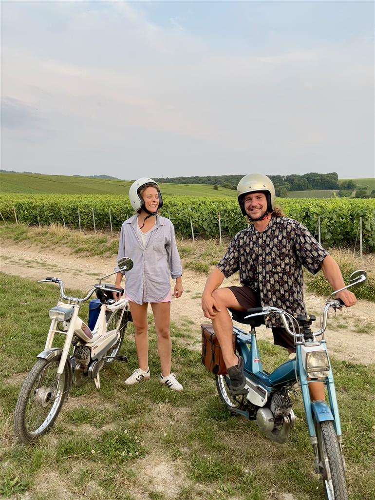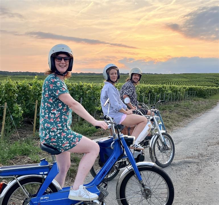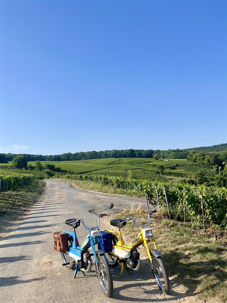 • 3 mobylettes dans les vignes avec des gens