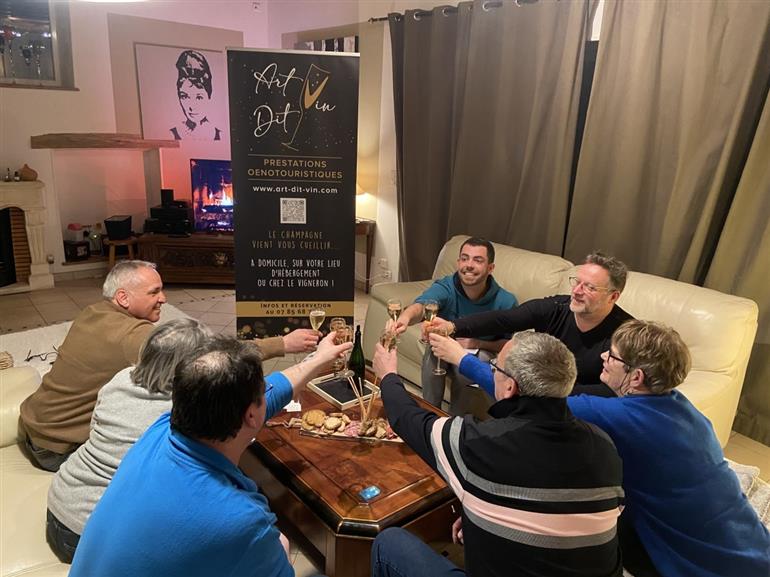 Wat ga je kiezen? Een Champagne aperitief quiz, een zintuiglijke initiatie en degustatie, een geleid bezoek aan de kelder, een gezelschapsspel voor familieplezier... Art Dit Vin komt bij je thuis om je een unieke en gezellige ervaring te bieden rond de wijn van de Champagne.