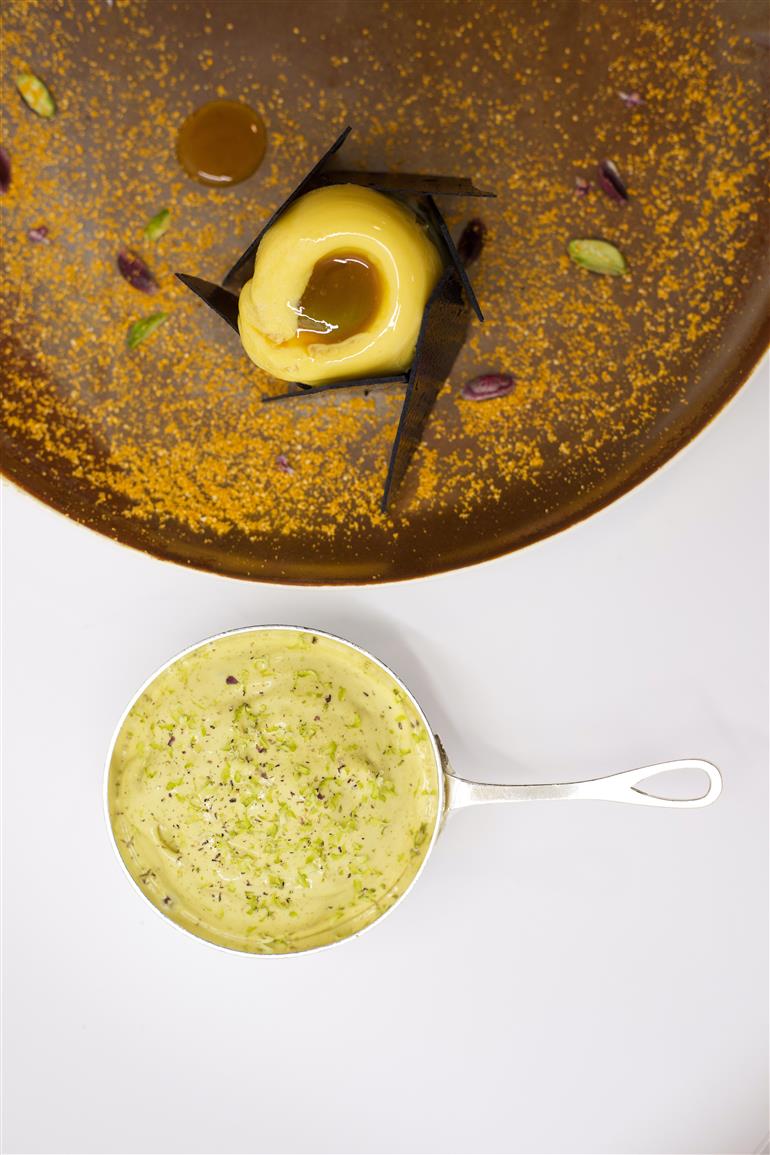 Le Chef, Arnaud Lallement, y propose des intemporels revisités au fil des ans comme le foie gras de champagne (un râpé de foie gras servi avec une tartine de baguette toastée au foie gras) ou le homard bleu (une recette en hommage à son papa).