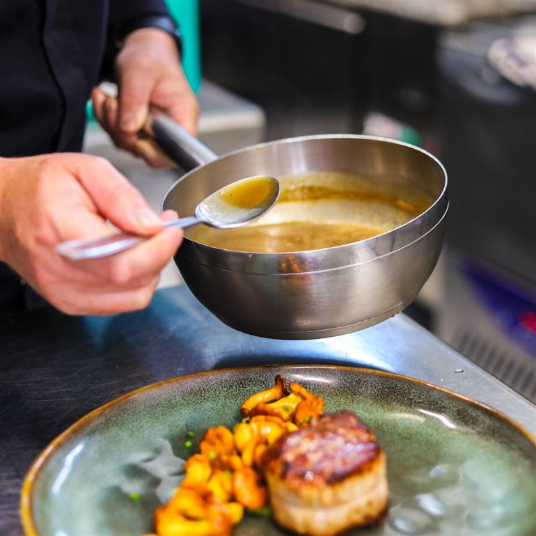 Le chef travail avec des produits de saisons et de qualité. La carte des vins propose plus de 120 références.